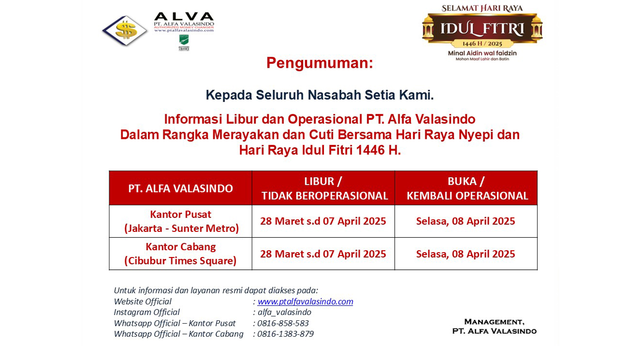 • Informasi Libur dan Operasional PT. Alfa Valasindo